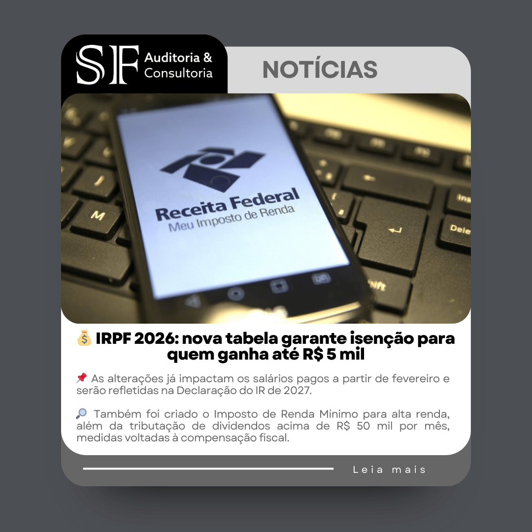 A Receita Federal do Brasil divulgou a nova tabela do Imposto de Renda da Pessoa Física (IRPF) para 2026, que entrou em vigor em 1º de janeiro e já produzirá efeitos nos salários pagos a partir de fevereiro. A principal mudança é a isenção total do imposto para contribuintes com renda mensal de até R$ 5 mil, além da redução gradual do IR para rendas de até R$ 7.350.