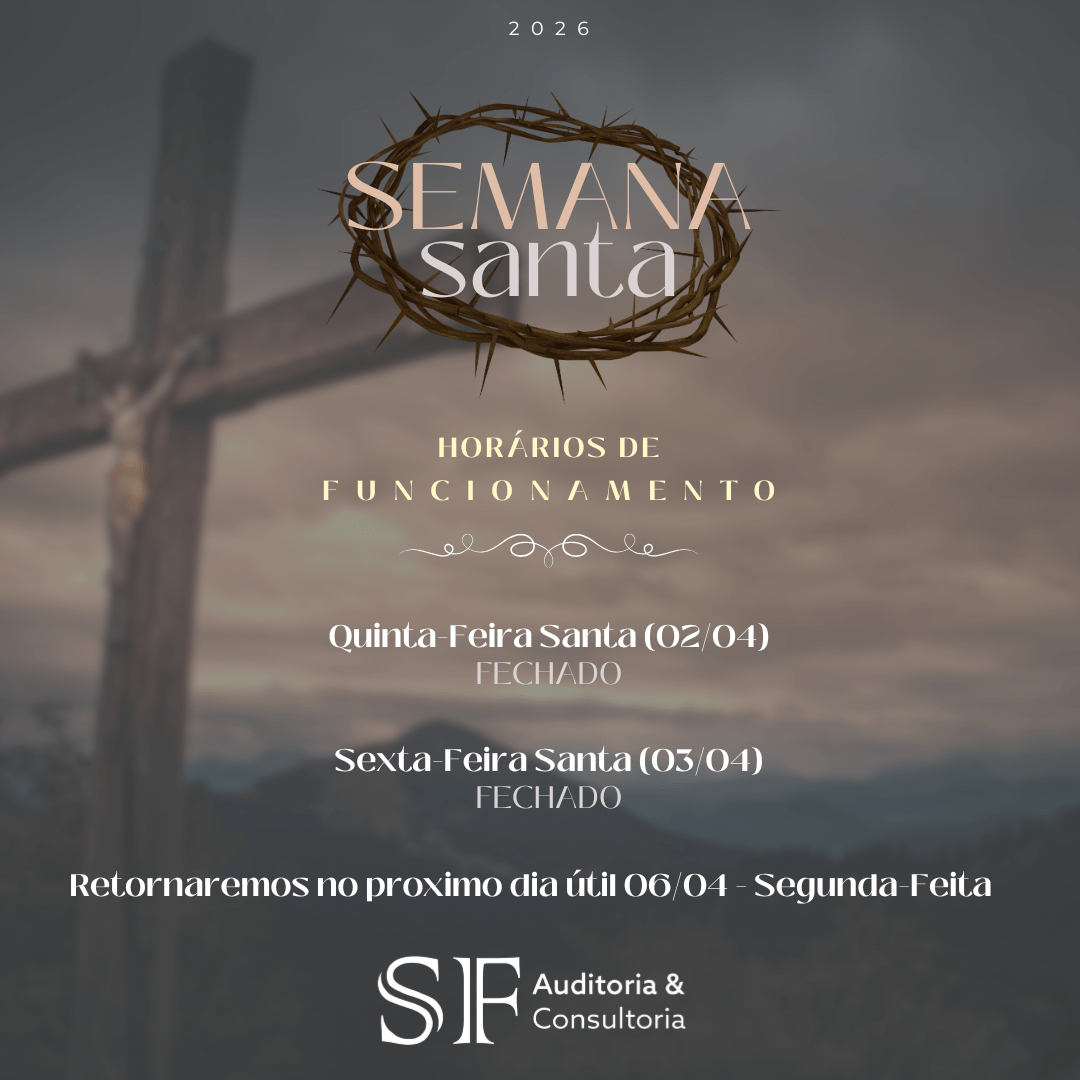 A SF Auditoria e Consultoria informa que, em razão da Semana Santa, especialmente da celebração da Sexta-feira Santa, não haverá expediente nos dias 02 e 03 de abril de 2026.