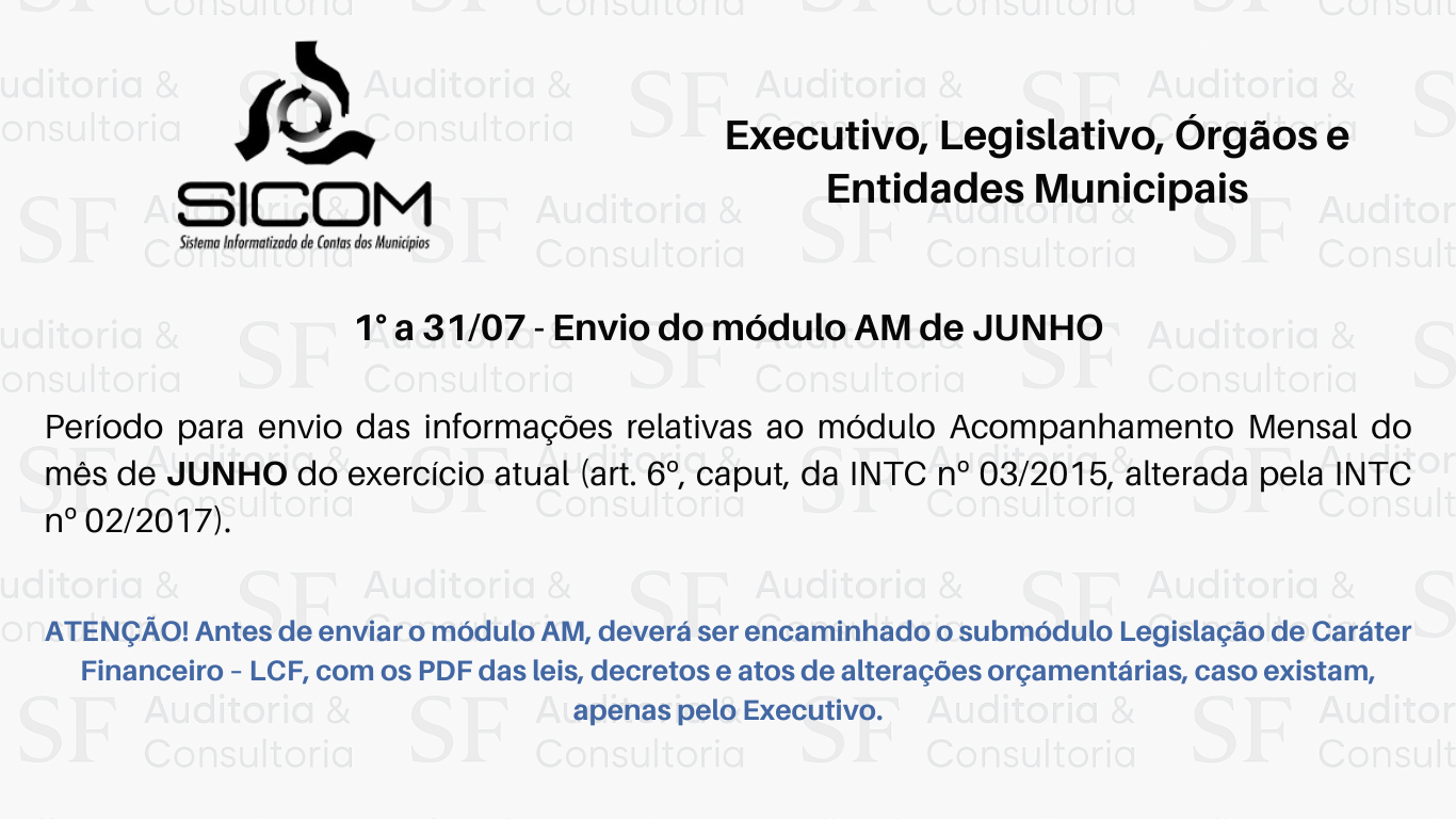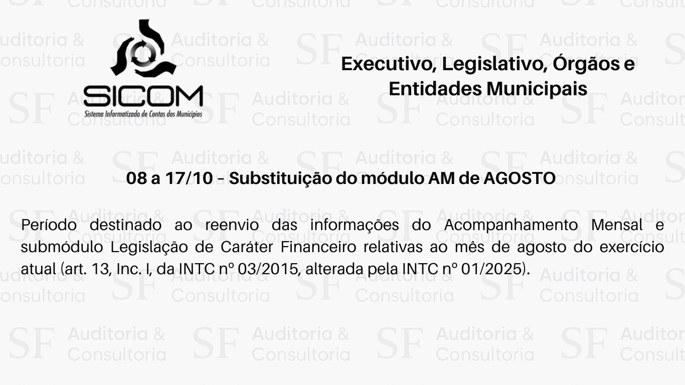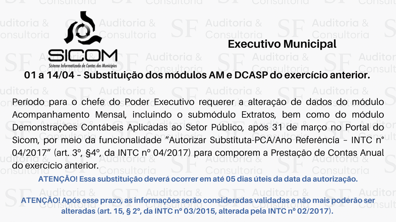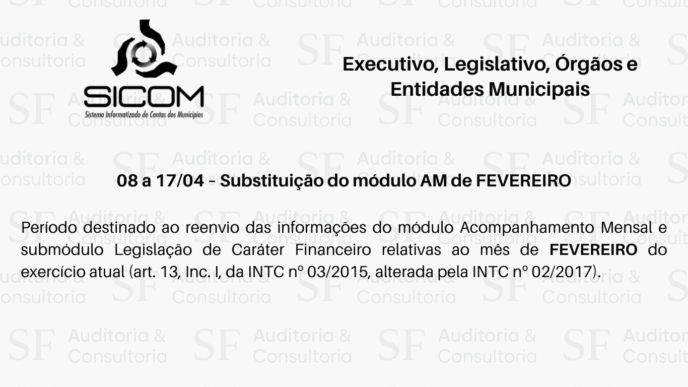 Caso o reenvio de informações ao Sicom (substituição de remessas AM e Balancete) não seja realizado por completo no prazo estabelecido pelo Tribunal, elas não serão reconhecidas e serão expurgadas do banco de dados do Tribunal, permanecendo válidas e reconhecidas pelo Sicom as remessas enviadas anteriormente (Art. 14-A, parágrafo único da INTC nº 03/2015, alterada pela INTC nº 02/2017).