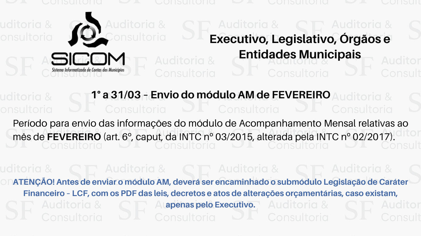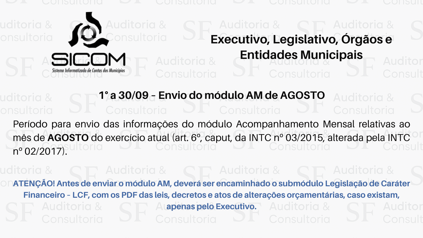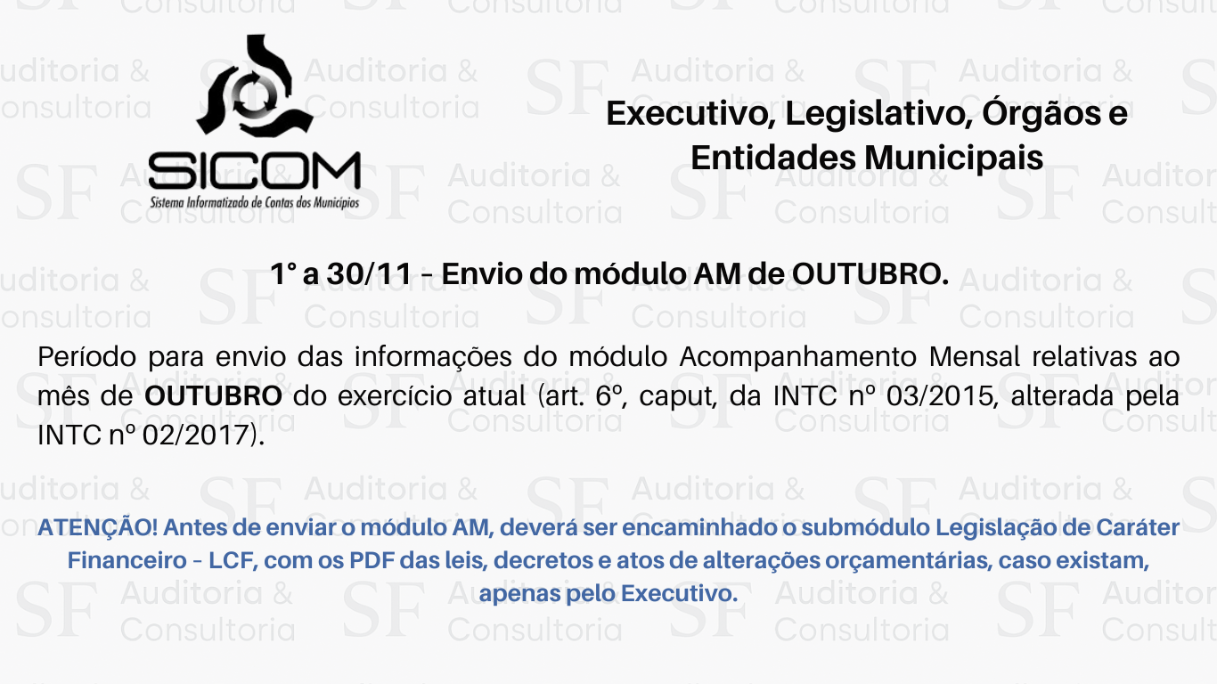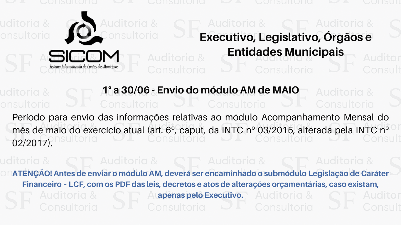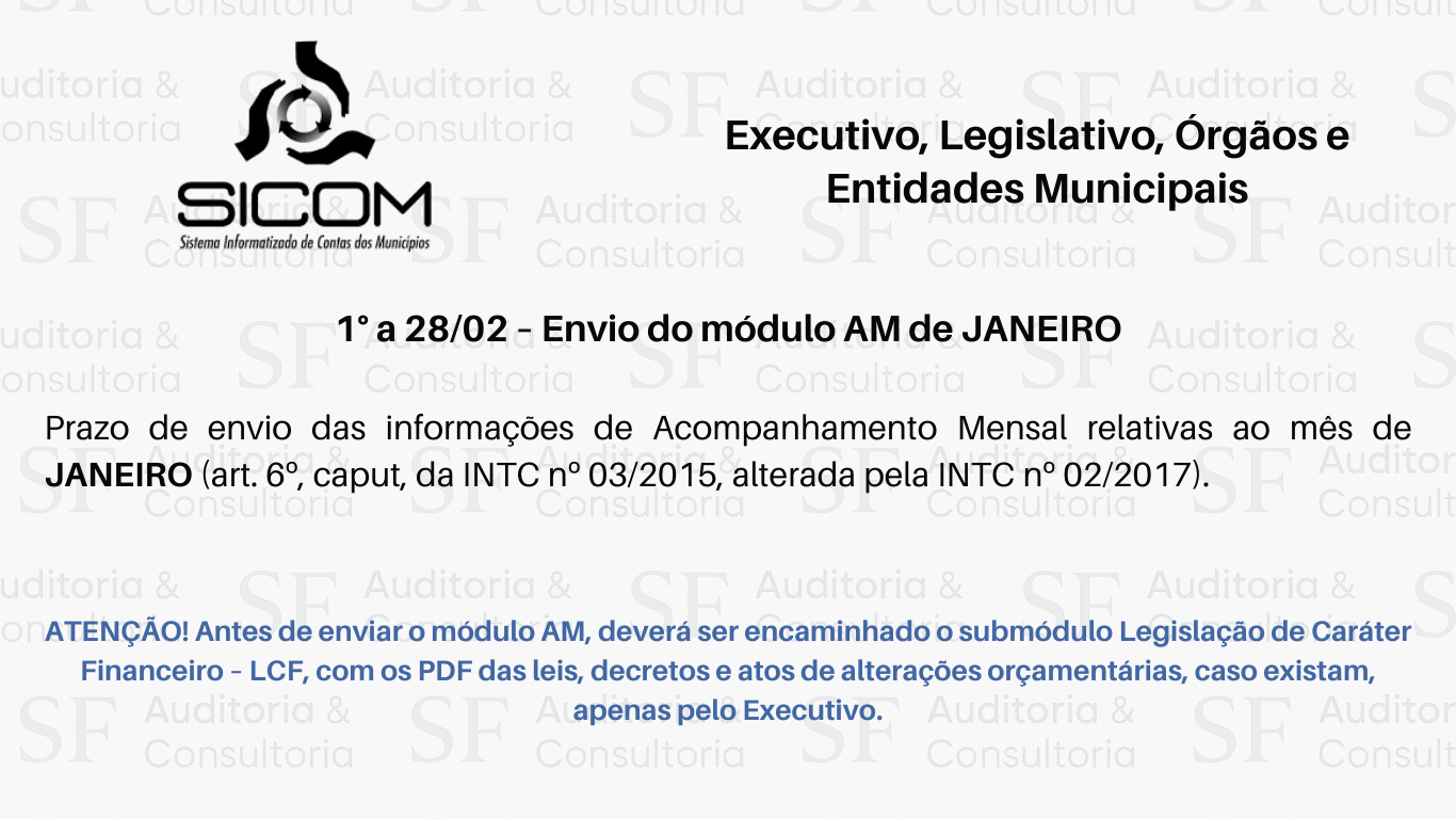Caso o reenvio de informações ao Sicom (substituição de remessas AM e Balancete) não seja realizado por completo no prazo estabelecido pelo Tribunal, elas não serão reconhecidas e serão expurgadas do banco de dados do Tribunal, permanecendo válidas e reconhecidas pelo Sicom as remessas enviadas anteriormente (Art. 14-A, parágrafo único da INTC nº 03/2015, alterada pela INTC nº 02/2017).