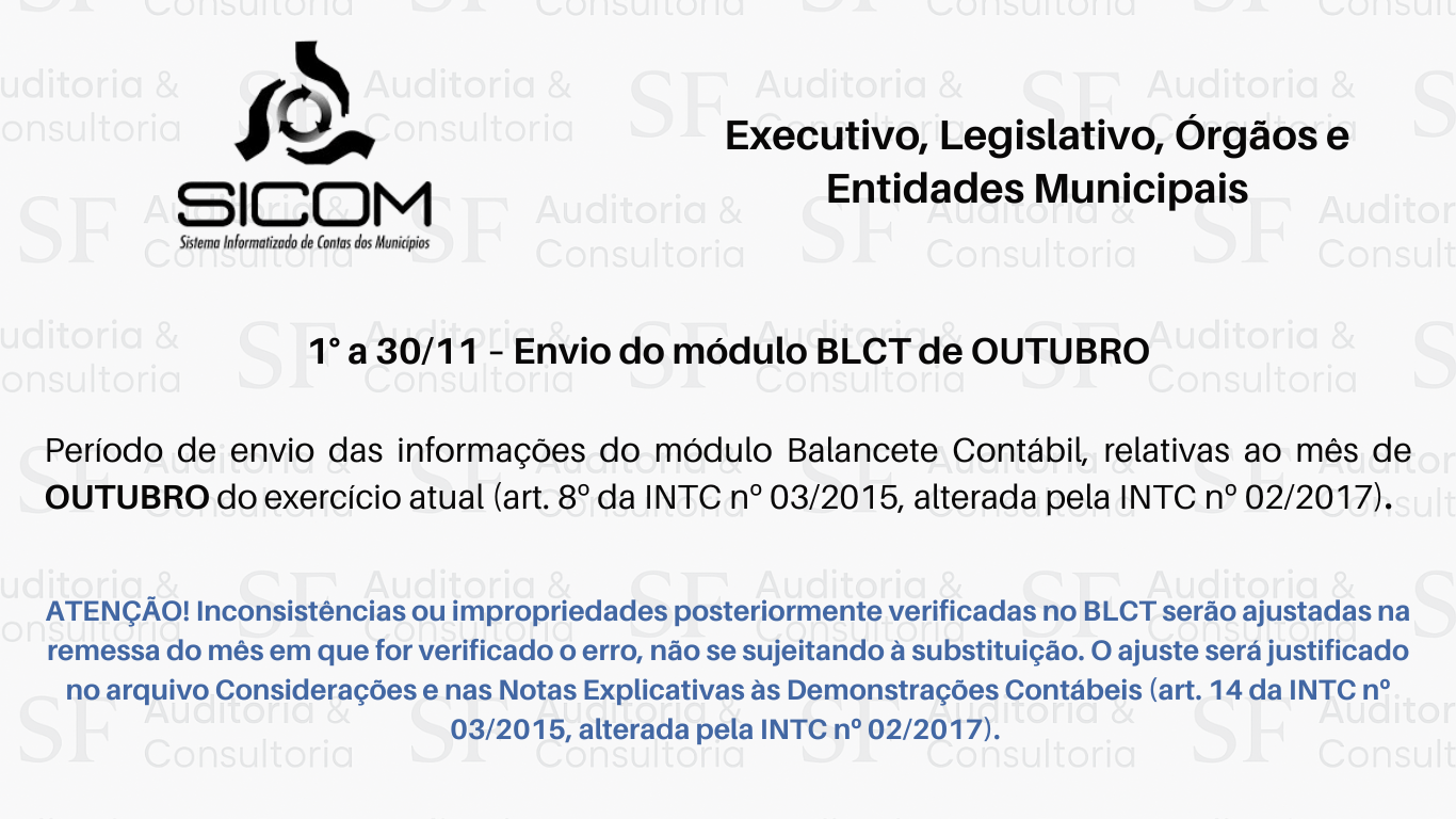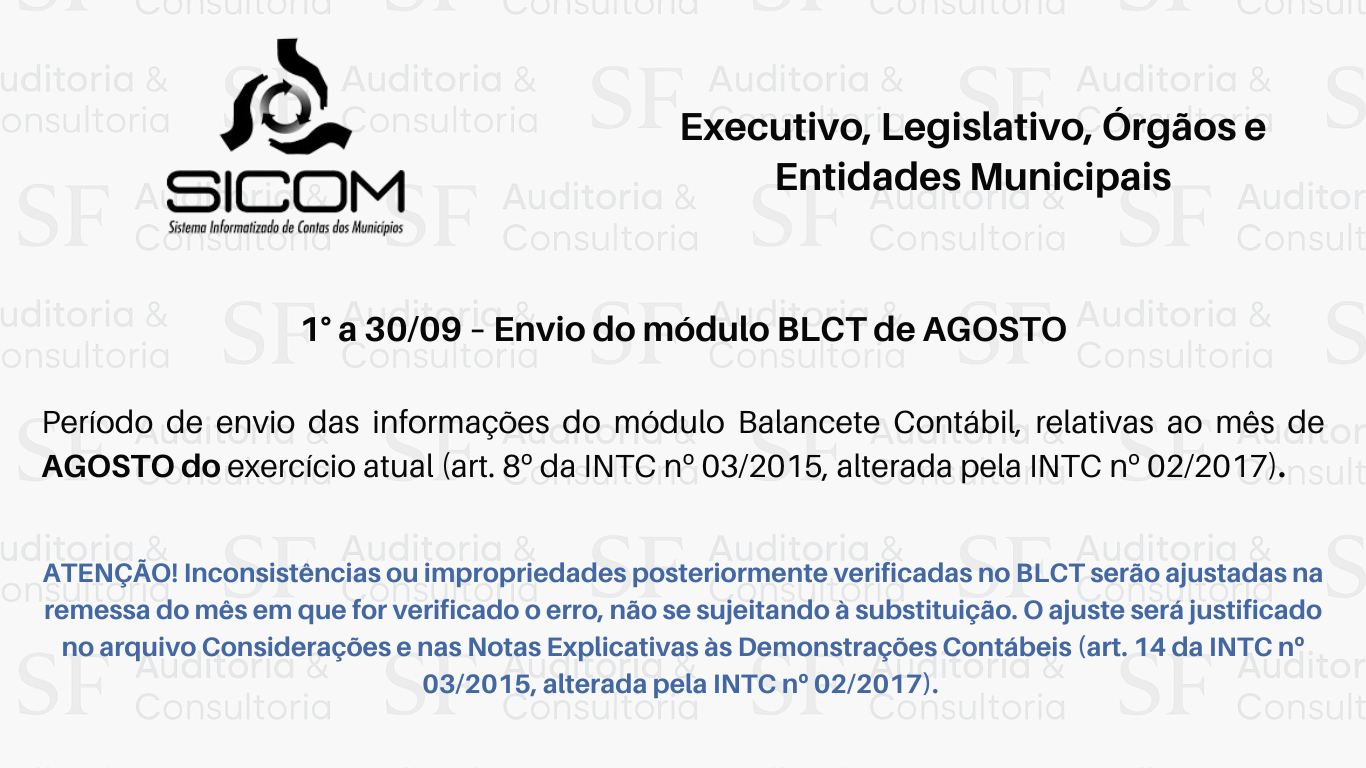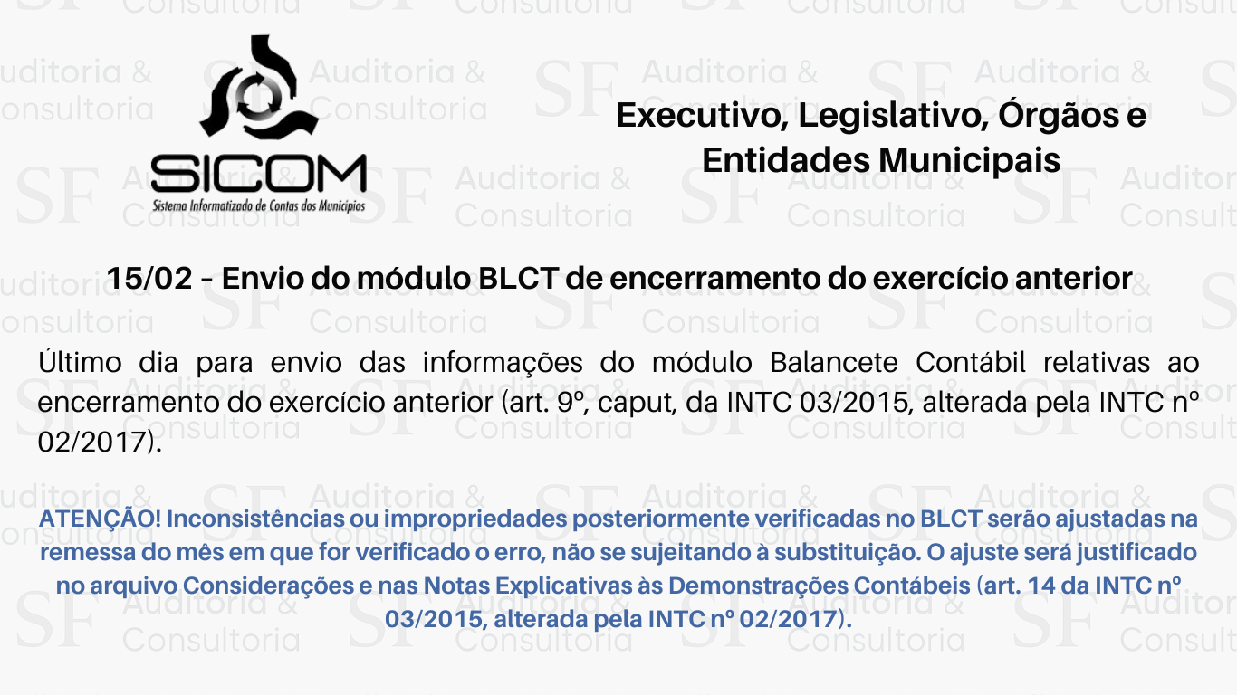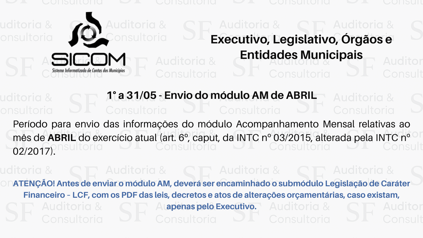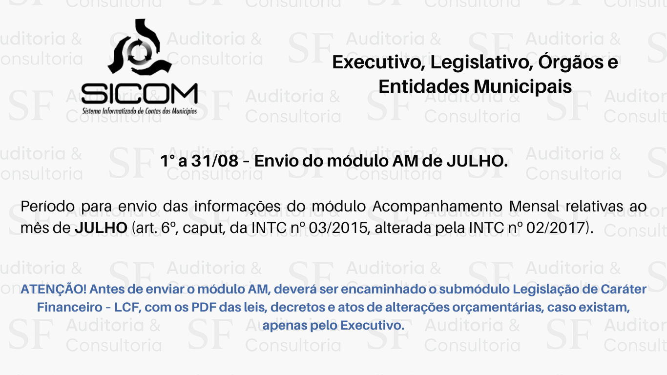 Caso o reenvio de informações ao Sicom (substituição de remessas AM e Balancete) não seja realizado por completo no prazo estabelecido pelo Tribunal, elas não serão reconhecidas e serão expurgadas do banco de dados do Tribunal, permanecendo válidas e reconhecidas pelo Sicom as remessas enviadas anteriormente (Art. 14-A, parágrafo único da INTC nº 03/2015, alterada pela INTC nº 02/2017).