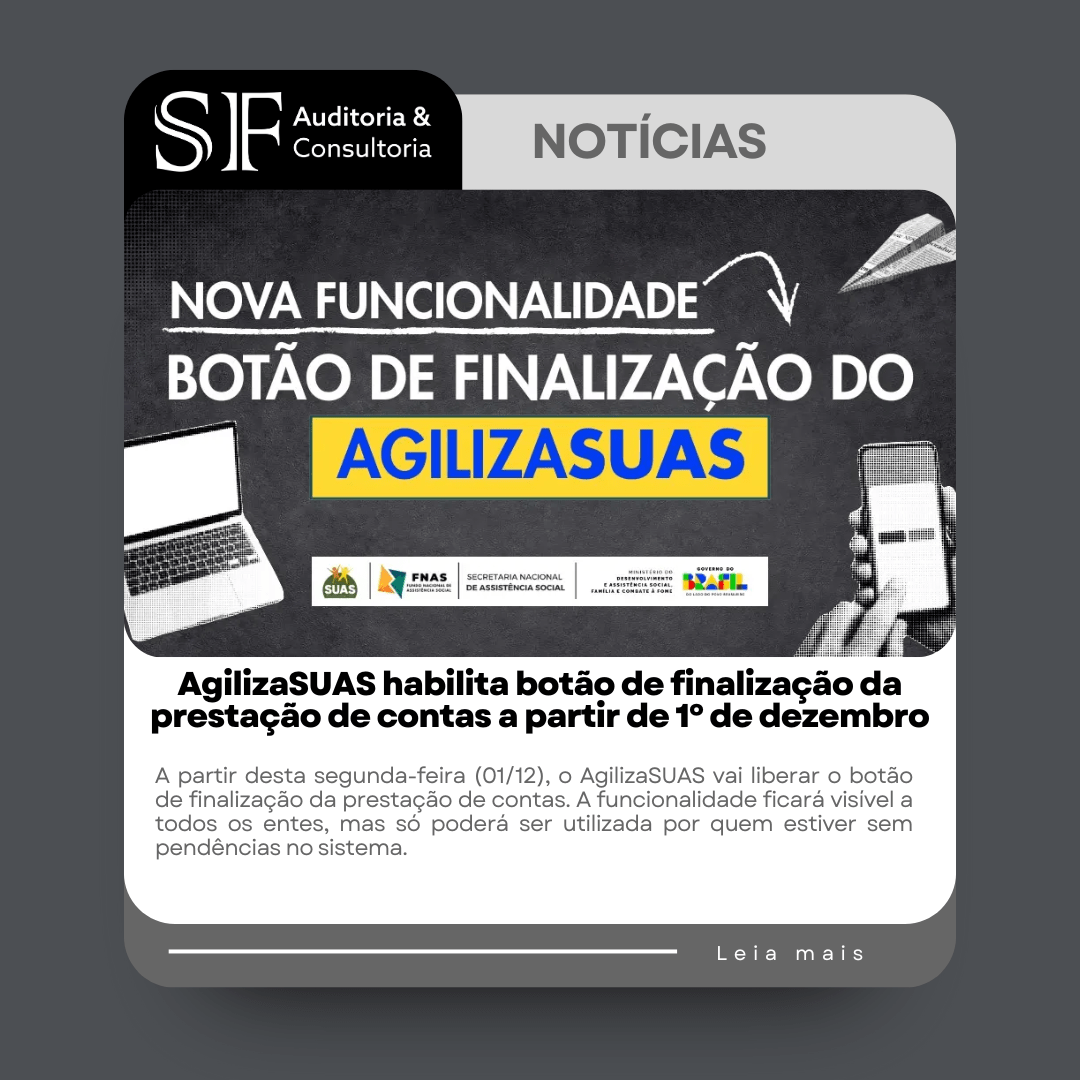 AgilizaSUAS habilita botão de finalização da prestação de contas a partir de 1º de dezembro