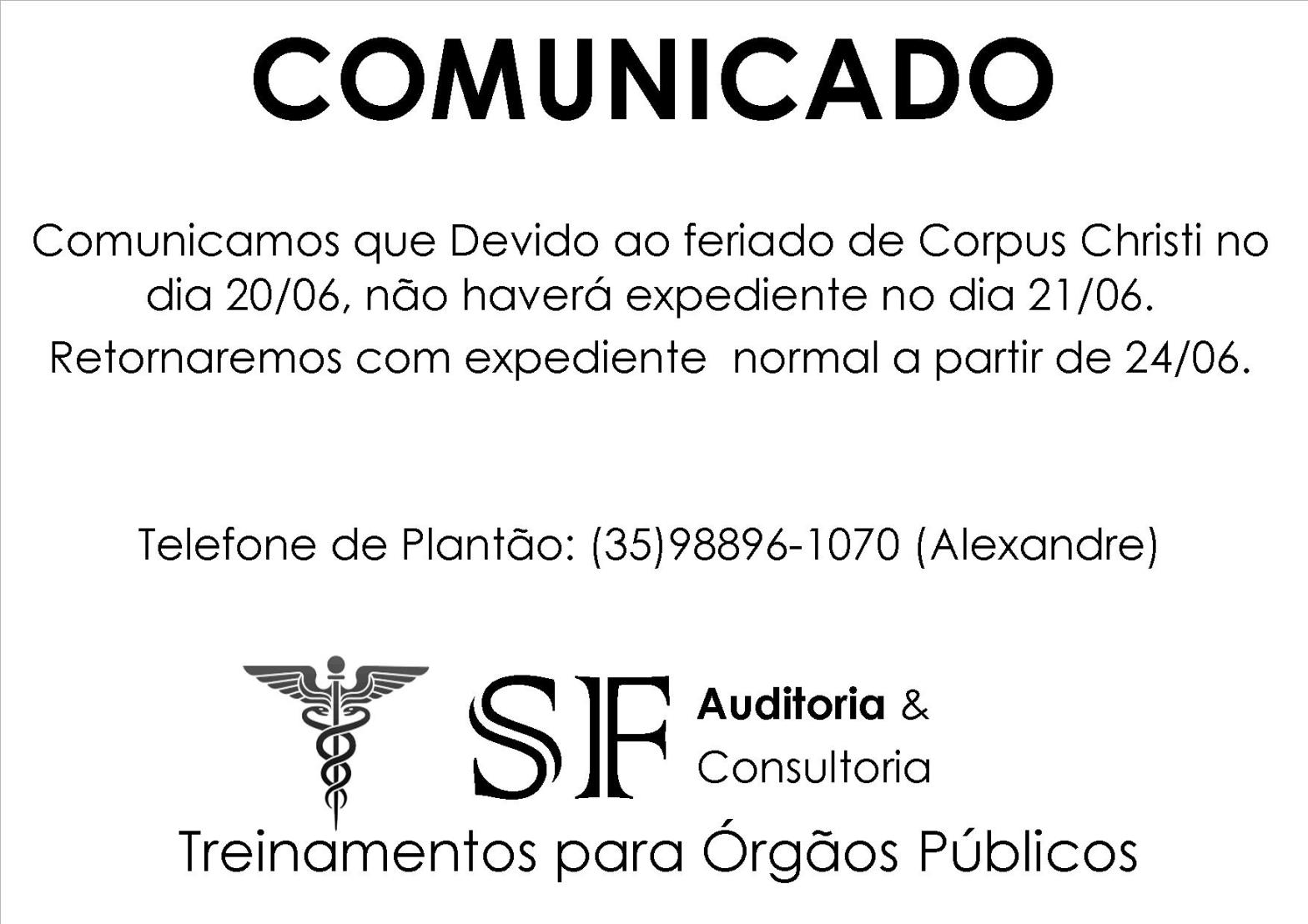 Venha participar! Solicite sua inscrição através de uma das formas de contato: e-mail: amanda@consultoriasf.com.br (35) 98826-2138 (WhatsApp) (35) 98896-1070 (35) 3851-2138
