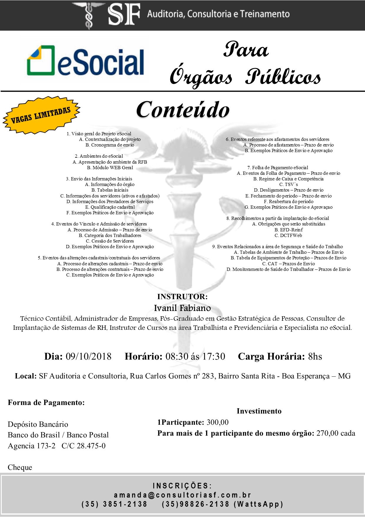 Treinamento novo! ESOCIAL PARA ÓRGÃOS PÚBLICOS