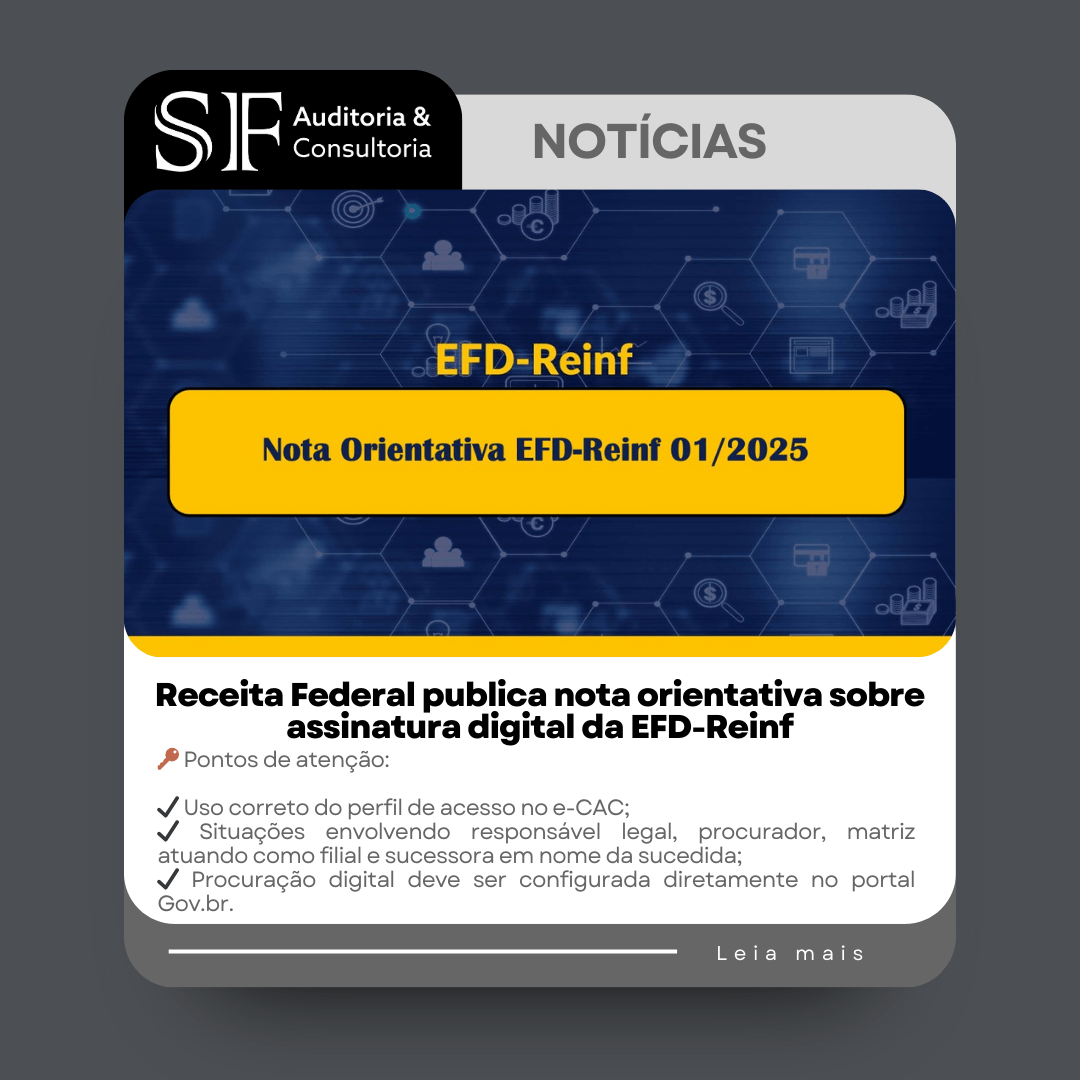 Receita Federal publica nota orientativa sobre assinatura digital da EFD-Reinf