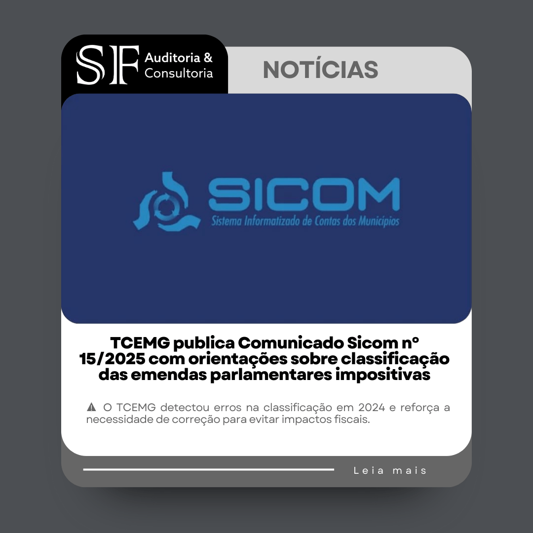 O Tribunal de Contas do Estado de Minas Gerais (TCE-MG), por meio da Coordenadoria do Sicom, publicou em 30 de abril de 2025 a Instrução Normativa nº 01/2025, atualizando as regras previstas na Instrução Normativa nº 03/2015, que disciplina a remessa de informações pelos municípios mineiros ao Sistema Informatizado de Contas dos Municípios (Sicom). EntreContinuarContinuar lendo “Tribunal de Contas de Minas Gerais Atualiza Normas de Remessa de Informações pelo SICOM”