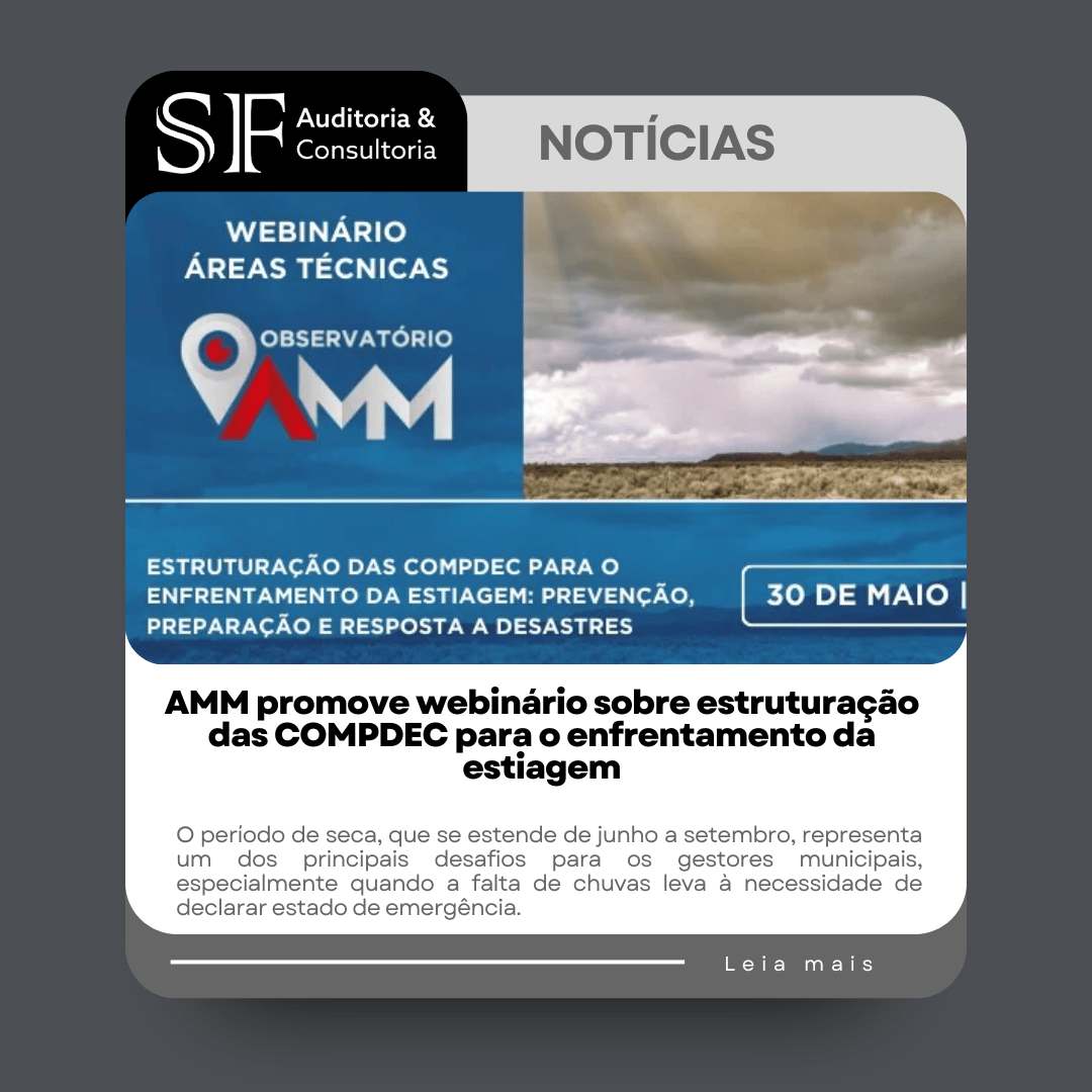 O período de seca, que se estende de junho a setembro, representa um dos principais desafios para os gestores municipais, especialmente quando a falta de chuvas leva à necessidade de declarar estado de emergência. Para apoiar prefeitos e equipes técnicas no planejamento de ações preventivas e de resposta, a Associação Mineira de Municípios (AMM) promove,ContinuarContinuar lendo “AMM promove webinário sobre estruturação das COMPDEC para o enfrentamento da estiagem”