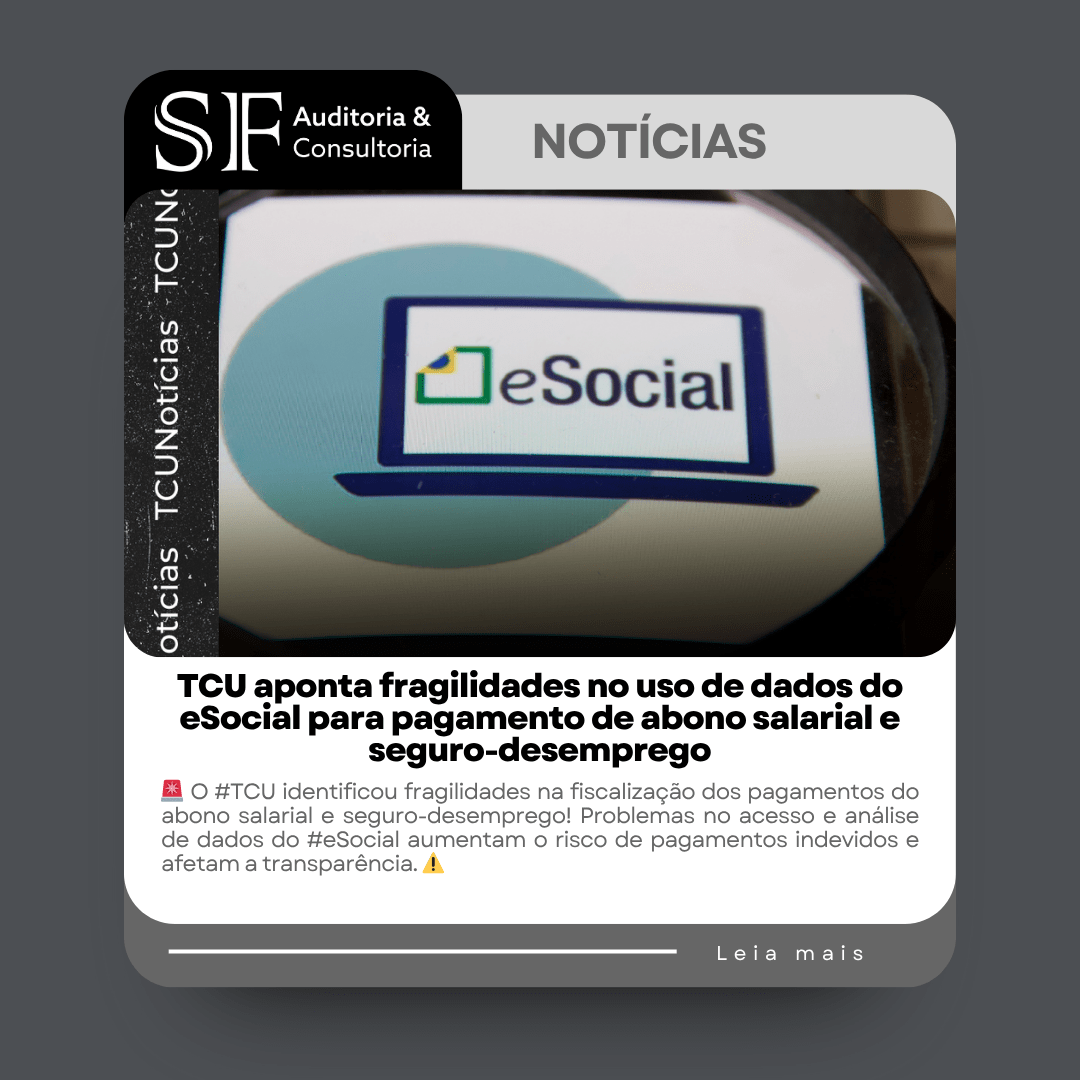 O Tribunal de Contas da União (TCU) realizou auditoria com o objetivo de avaliar a consistência e a integridade dos dados utilizados nos sistemas responsáveis pelos pagamentos do abono salarial e do seguro-desemprego, especialmente aqueles extraídos do eSocial. O trabalho identificou dificuldades na fiscalização decorrentes de problemas no acesso e na análise dos dados. SegundoContinuarContinuar lendo “TCU aponta fragilidades no uso de dados do eSocial para pagamento de abono salarial e seguro-desemprego”